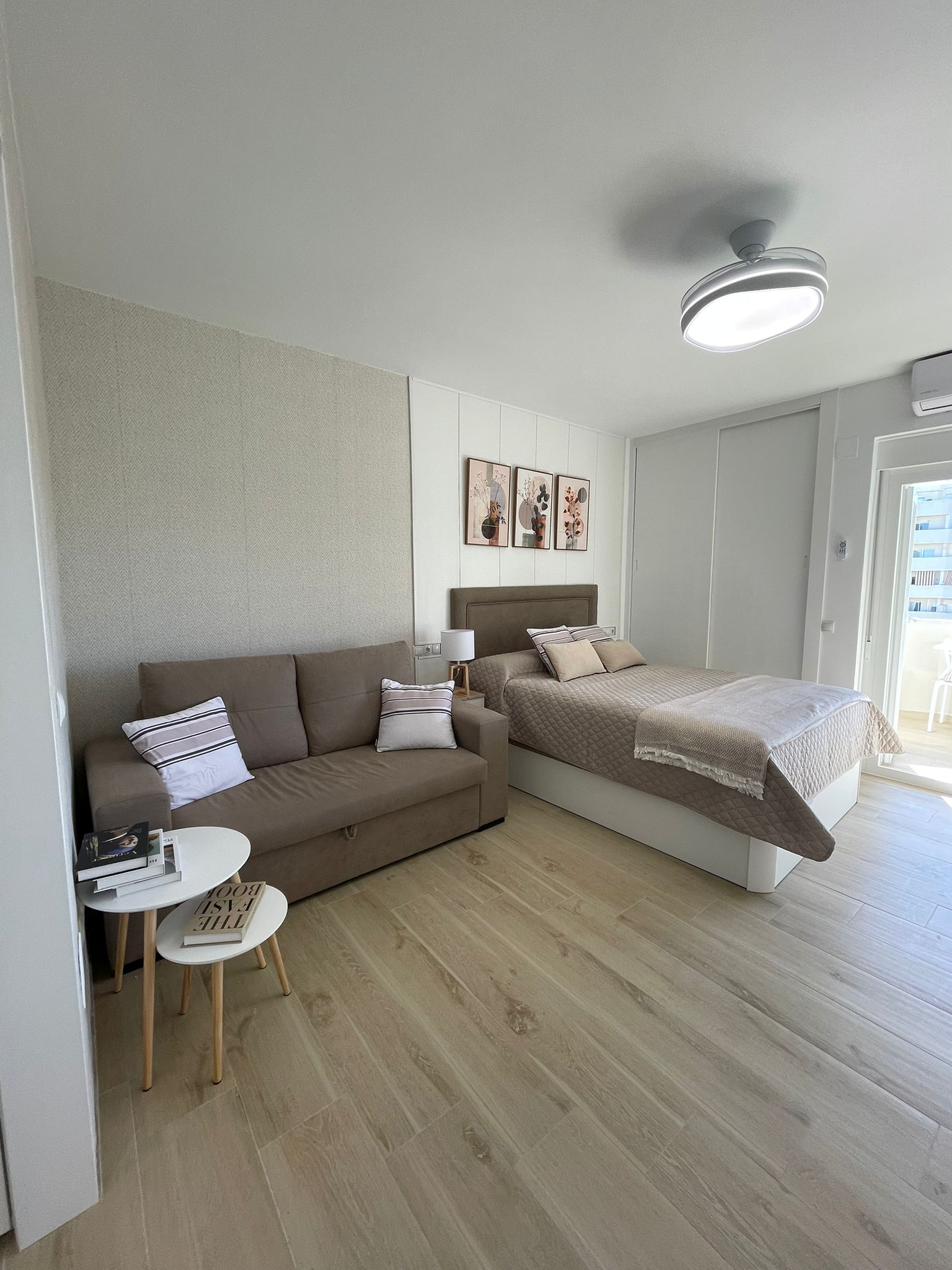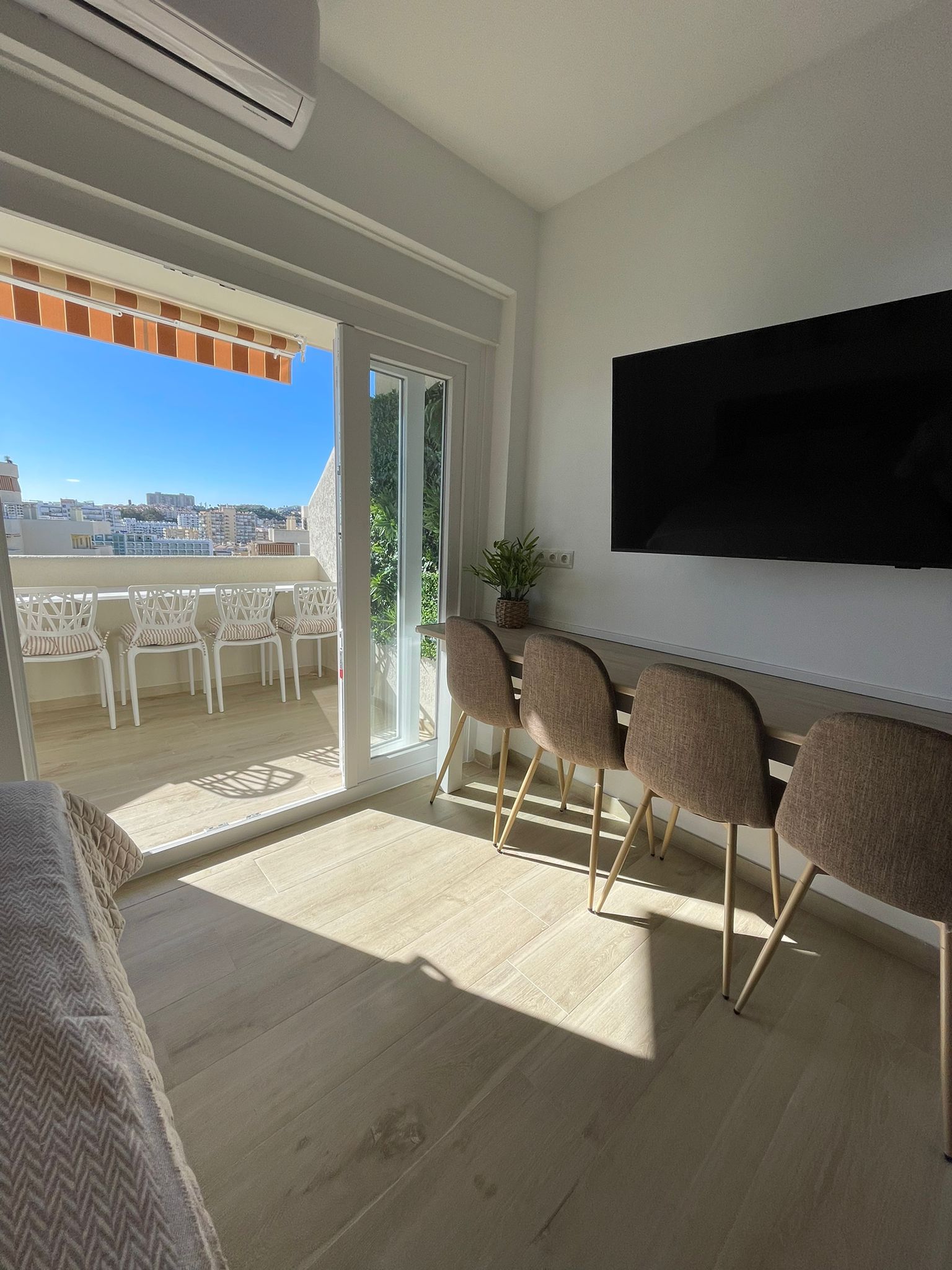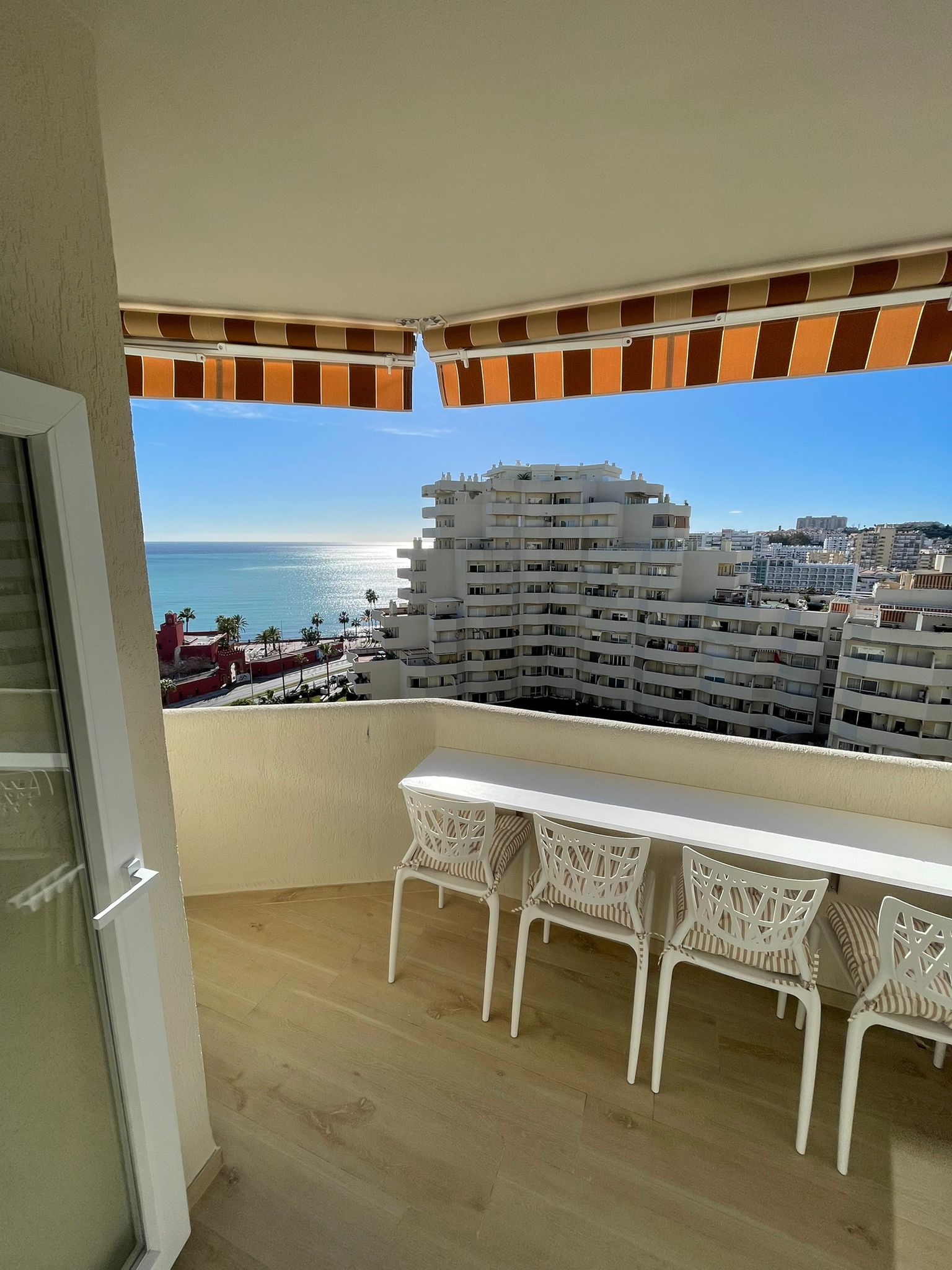 Ubicado en primera línea de playa, aquí el mar no es una promesa, es una presencia constante. Desde la terraza, la vista se abre hacia el azul infinito del Mediterráneo, mientras el Castillo de Bil Bil aparece como un toque único y especial.