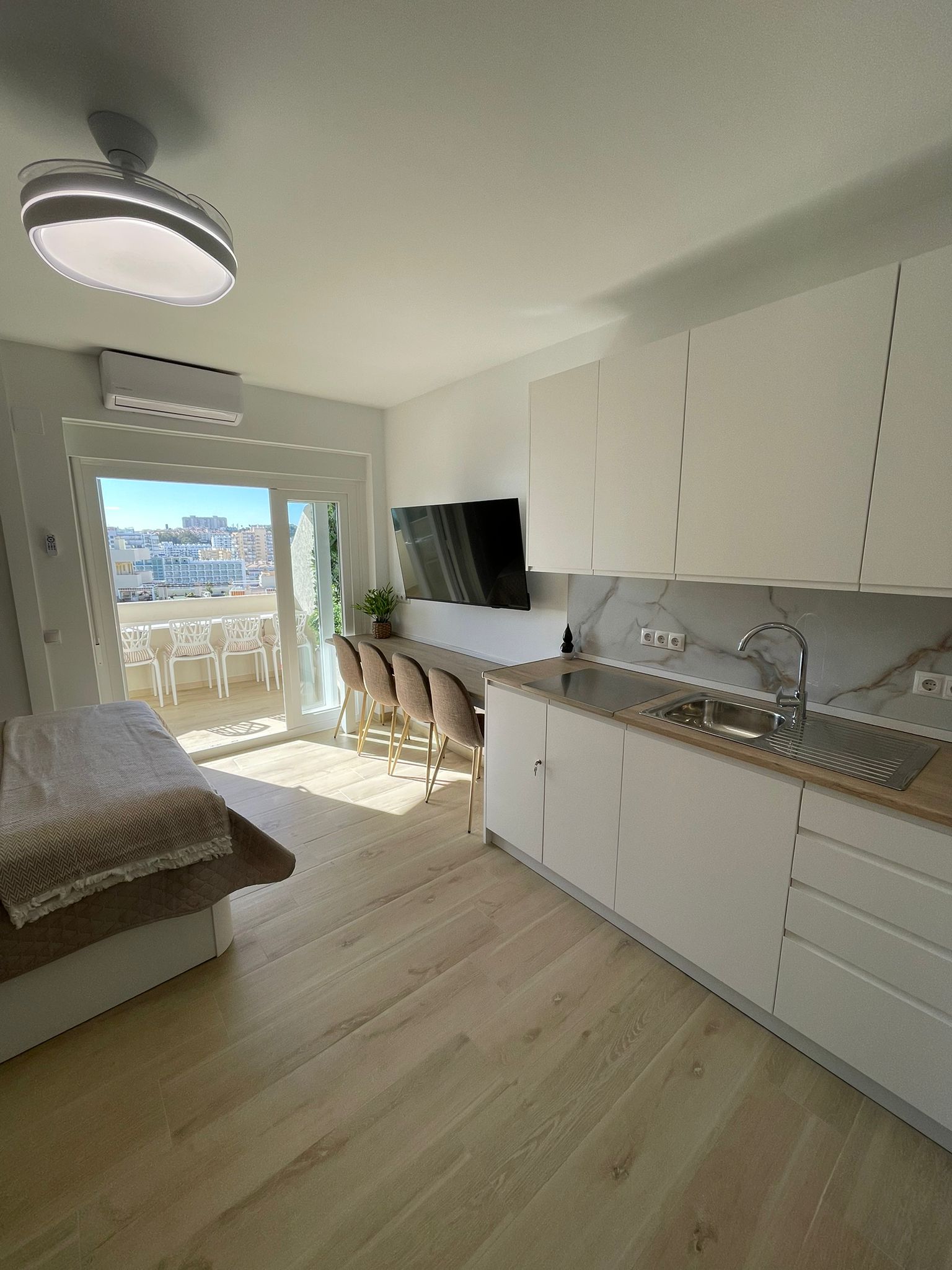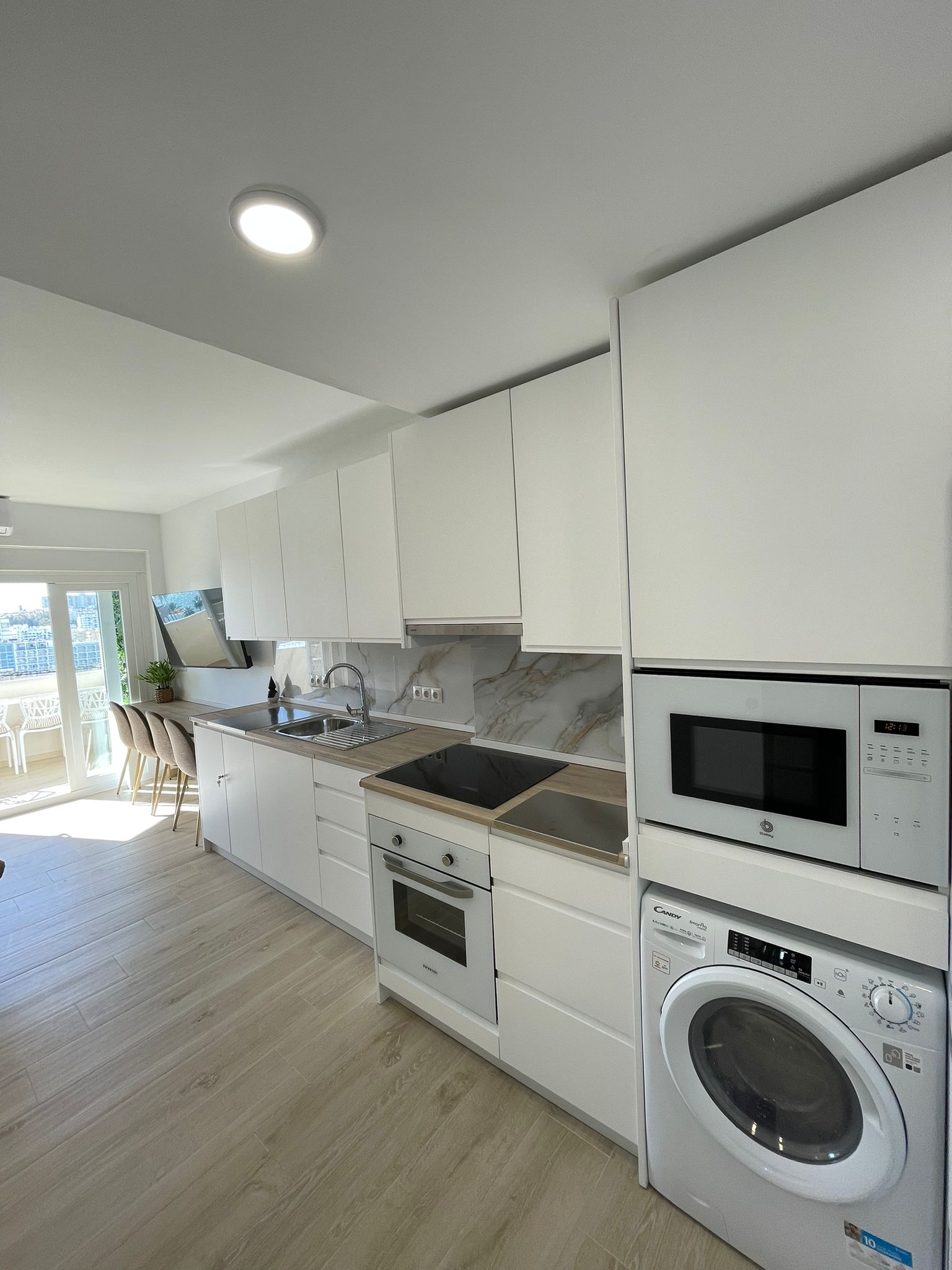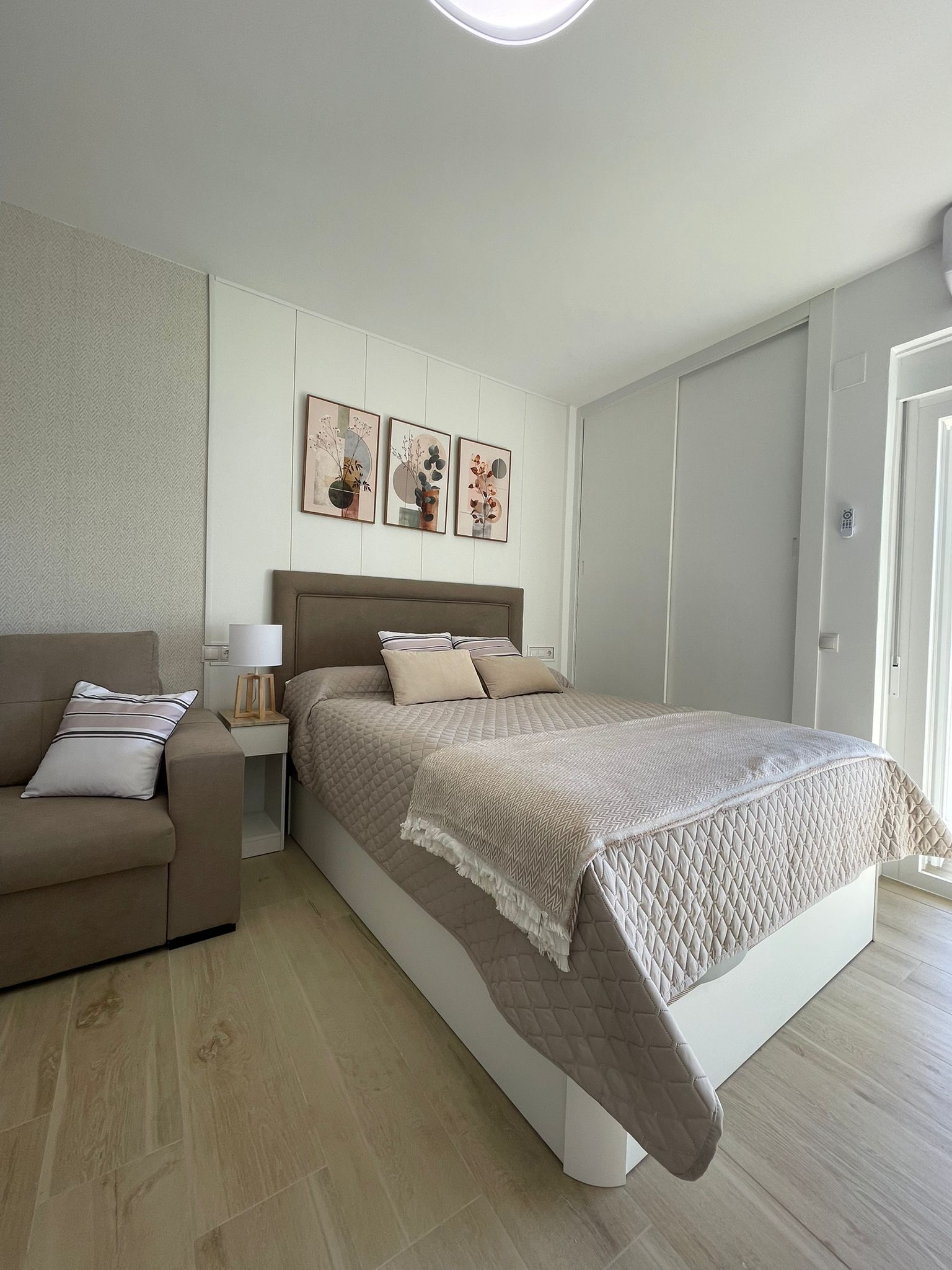 Ubicado en primera línea de playa, aquí el mar no es una promesa, es una presencia constante. Desde la terraza, la vista se abre hacia el azul infinito del Mediterráneo, mientras el Castillo de Bil Bil aparece como un toque único y especial.